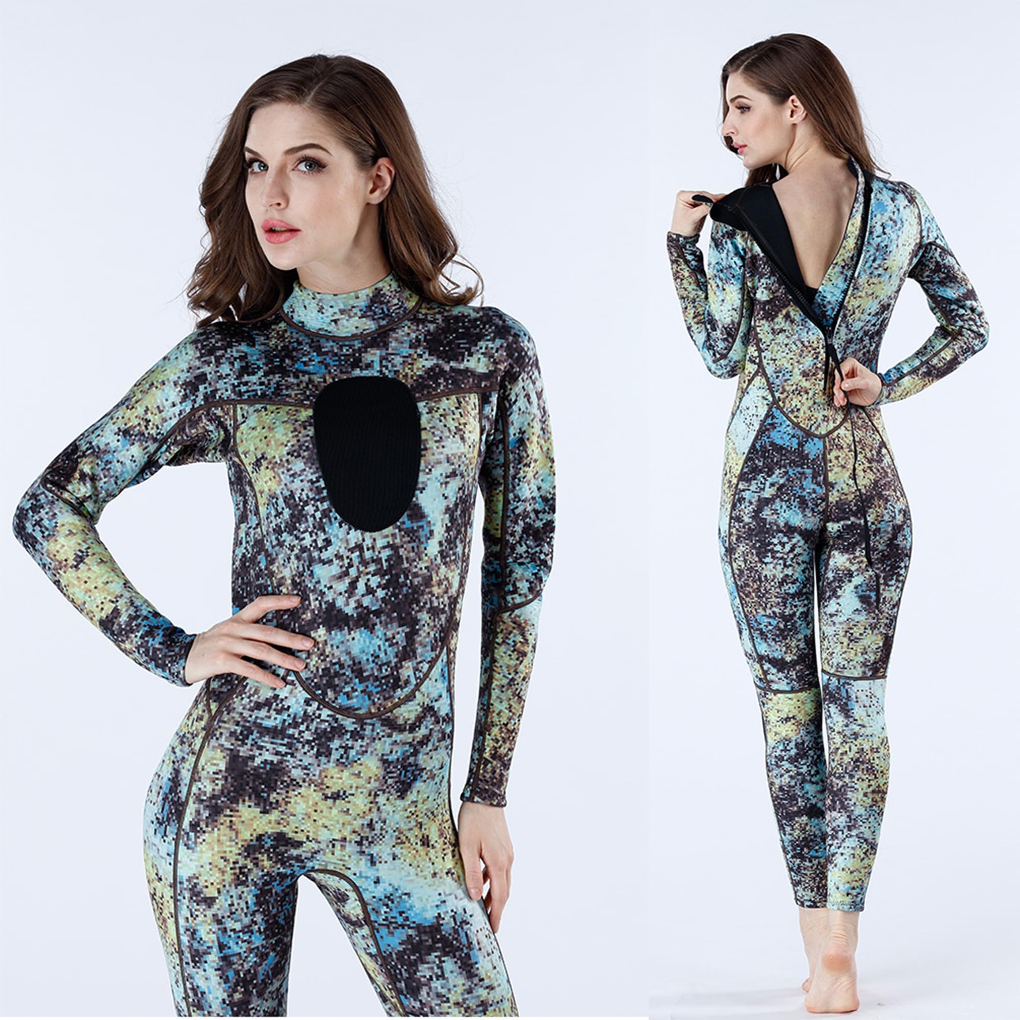 Featuring a classic crewneck design, it fits snugly around the neck without tightness, effectively preventing zipper scratches for a more comfortable wear. The unique full-body camouflage pattern not only boasts a stylish, sleek look but also enhances thermal insulation, making you stand out in the water. Equipped with a heavy-duty YKK back zipper, renowned for durability and smooth operation, ensuring long-term reliable use without jamming; the accompanying zipper pull and hook-and-loop closure enable easy independent donning and doffing. Additionally, flatlock stitching technology creates a smooth, flat suit surface, avoiding friction and discomfort from raised seams during movement.